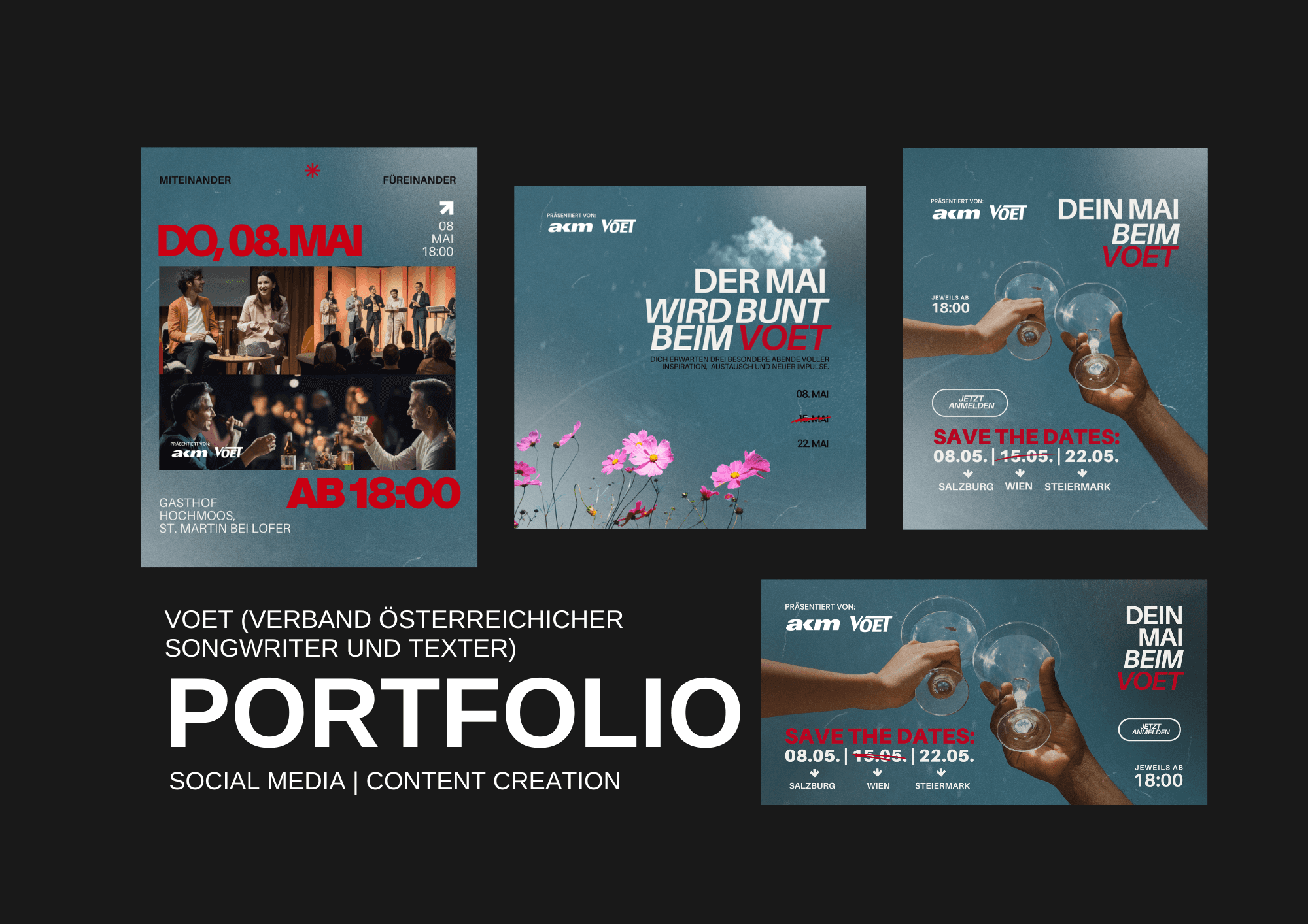 Als Social Media Managerin und Content Creatorin beim Verband Österreichischer Textautoren & Musiker (VOET) gestalte ich die digitale Identität des Vereins auf Meta & TikTok. Mit kreativen Inhalten, strategischem Storytelling und einem feinen Gespür für Trends stärke ich die Sichtbarkeit unserer Mitglieder und fördere aktiv ihre Vernetzung innerhalb der österreichischen Musik- und Textszene. Es ist für mich eine große Ehre, in Wien so intensiv mit der Kunst- und Kulturszene arbeiten zu dürfen. Diese Arbeit ist für mich weit mehr als ein Job – sie ist ein echtes Herzensanliegen. Ich brenne dafür, Kunst und Kultur sichtbar zu machen, kreative Menschen zu verbinden und ihren Stimmen digital Raum zu geben. Mein Herzblut fließt in jedes Posting, jede Story und jede Idee. Ich habe ein besonderes Händchen dafür, Verbände digital zum Leben zu erwecken und starke Communities aufzubauen. In kurzer Zeit ist es gelungen, auf Meta eine lebendige, engagierte Community mit Tausenden Followern zu etablieren – geprägt von Austausch, Vielfalt und künstlerischem Miteinander. Gemeinsam mit der AKM veranstalten wir regelmäßig gut besuchte Events, die auch offline die kreative Energie des VOET spürbar machen. ❤️🔥 Let's keep the Energy alive! 🤘